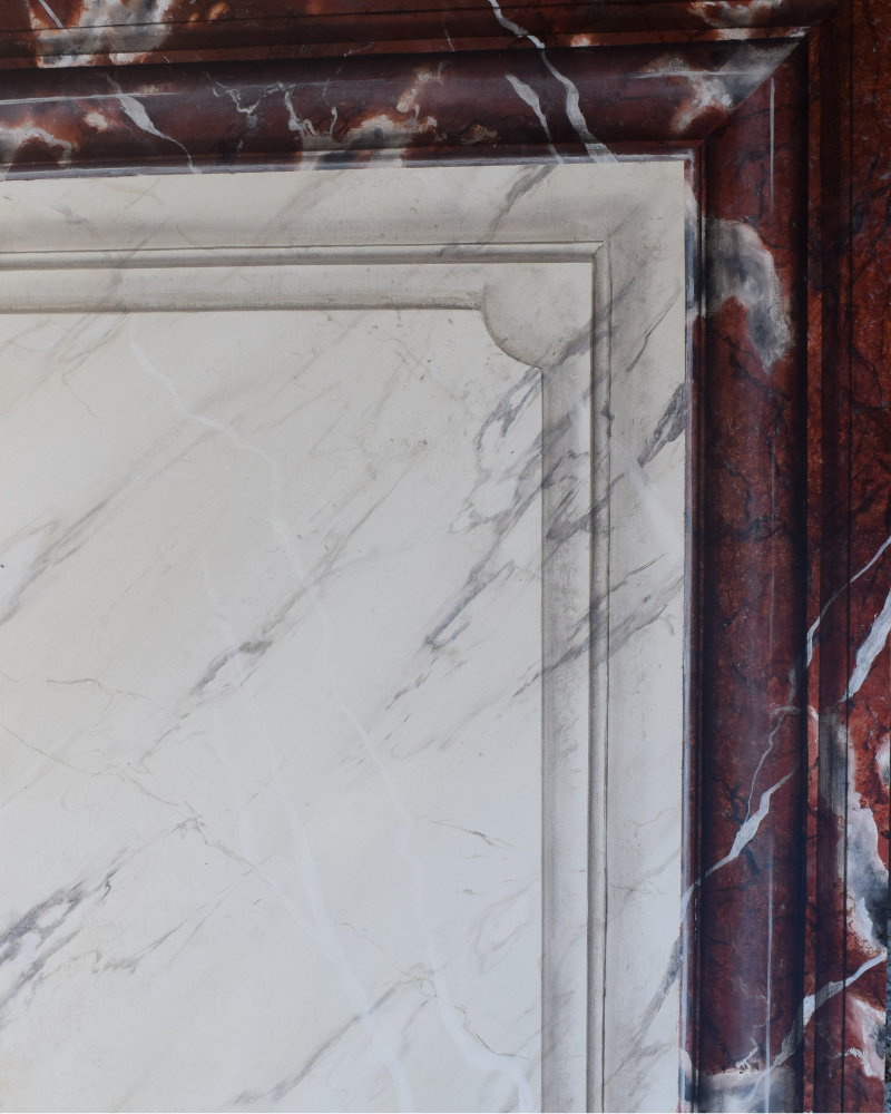 Le trompe-l’œil pourra servir à imiter des matières comme le marbre, la pierre ou le bois, sur des murs ou sur des éléments d’architecture, ce qui peut totalement se confondre dans l'architecture de la ville de Mayenne.