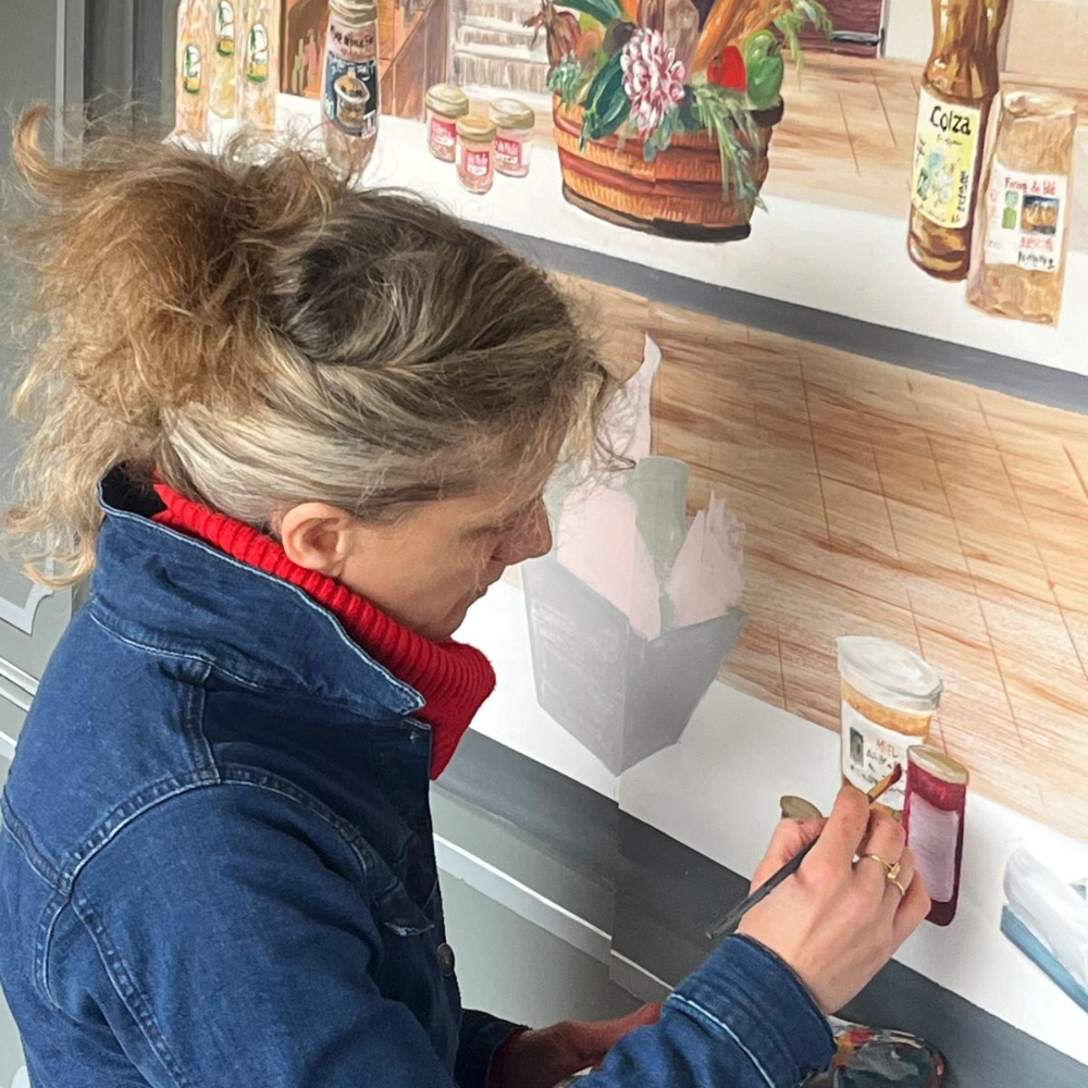 2- Réalisation d'un trompe-l'oeil pour la façade d'un d'un magasin à Saulges (53).